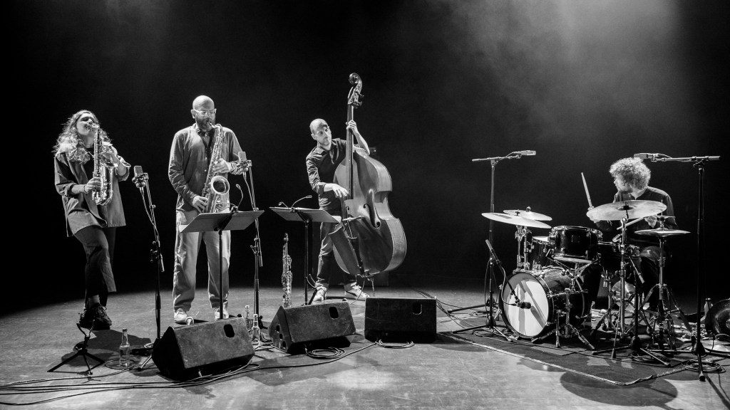 Le quartet Big Fish est le fruit de la collaboration entre le trio aérien Dancing Birds (Soro, Midon, Tessier) et la saxophoniste Léa Ciechelski. Une plongée dans l’imaginaire des eaux et des airs.