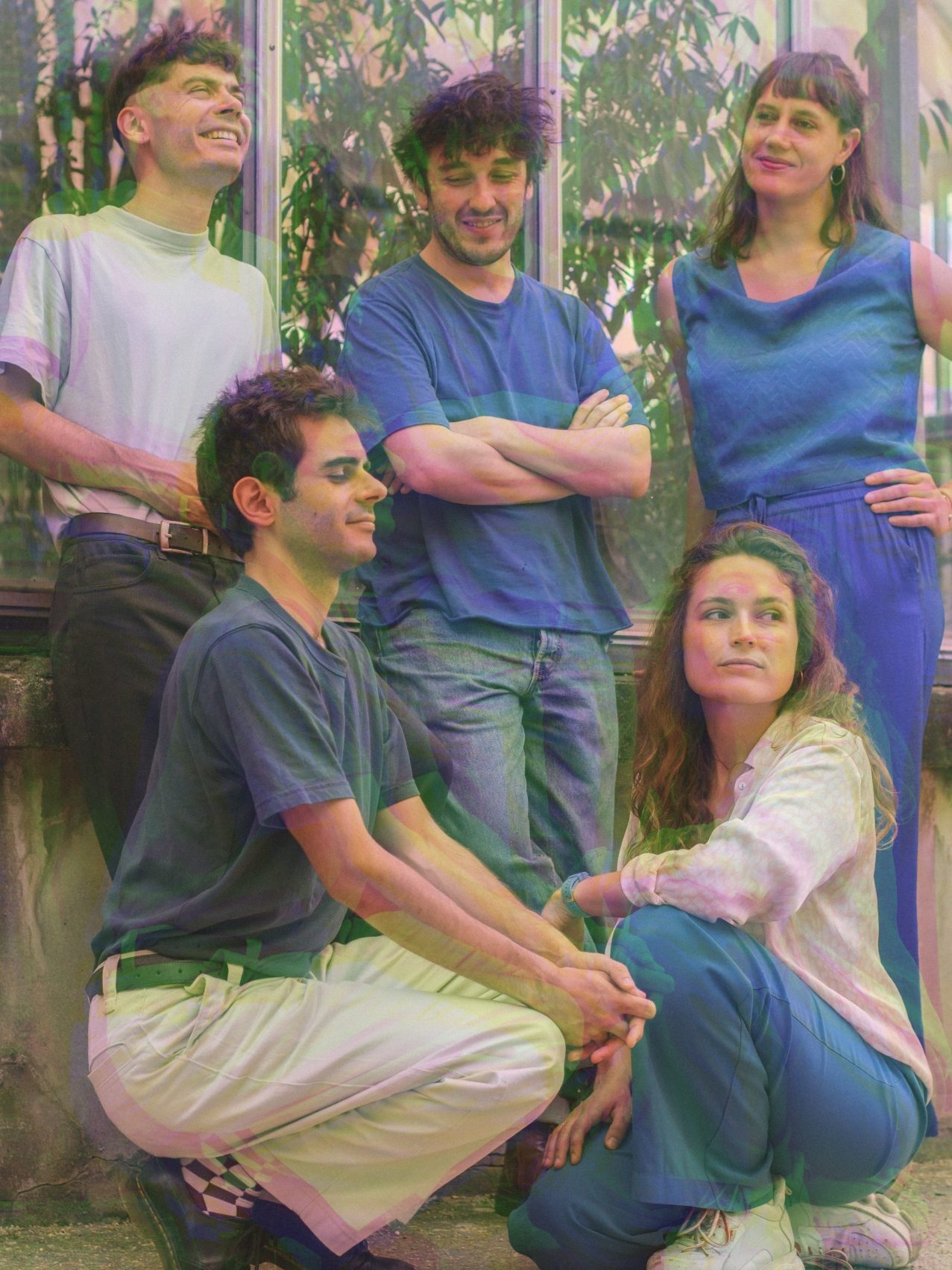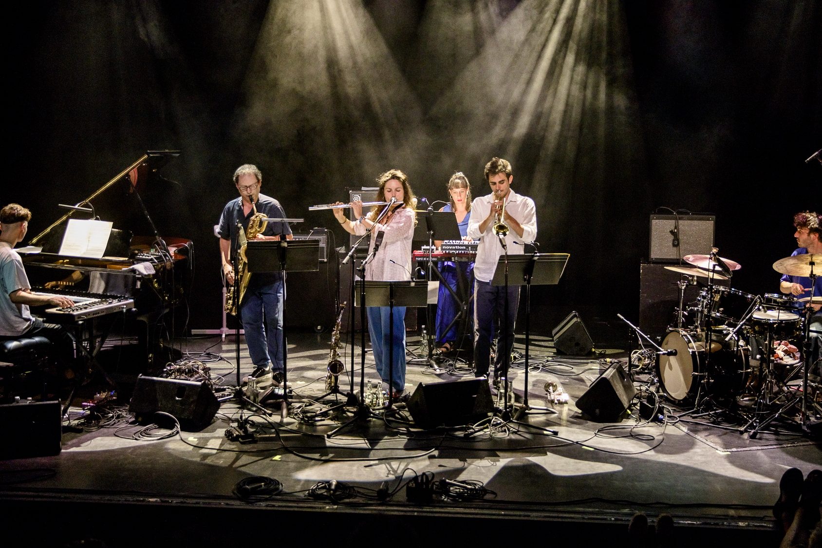 Quintet hybride, mélangeant l’acoustique des souffles, les sons électroniques/électroacoustiques et les synthétiseurs.